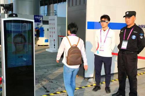 佩戴5G-AR眼镜,电信工作人员与安保人员一起护卫进博安全